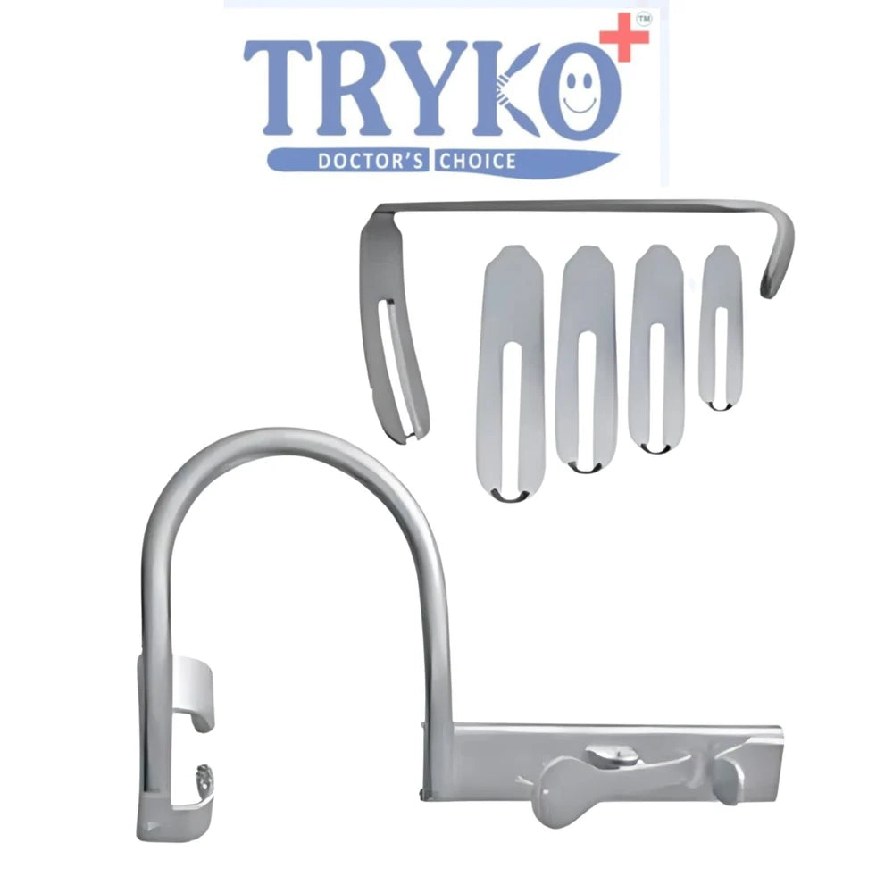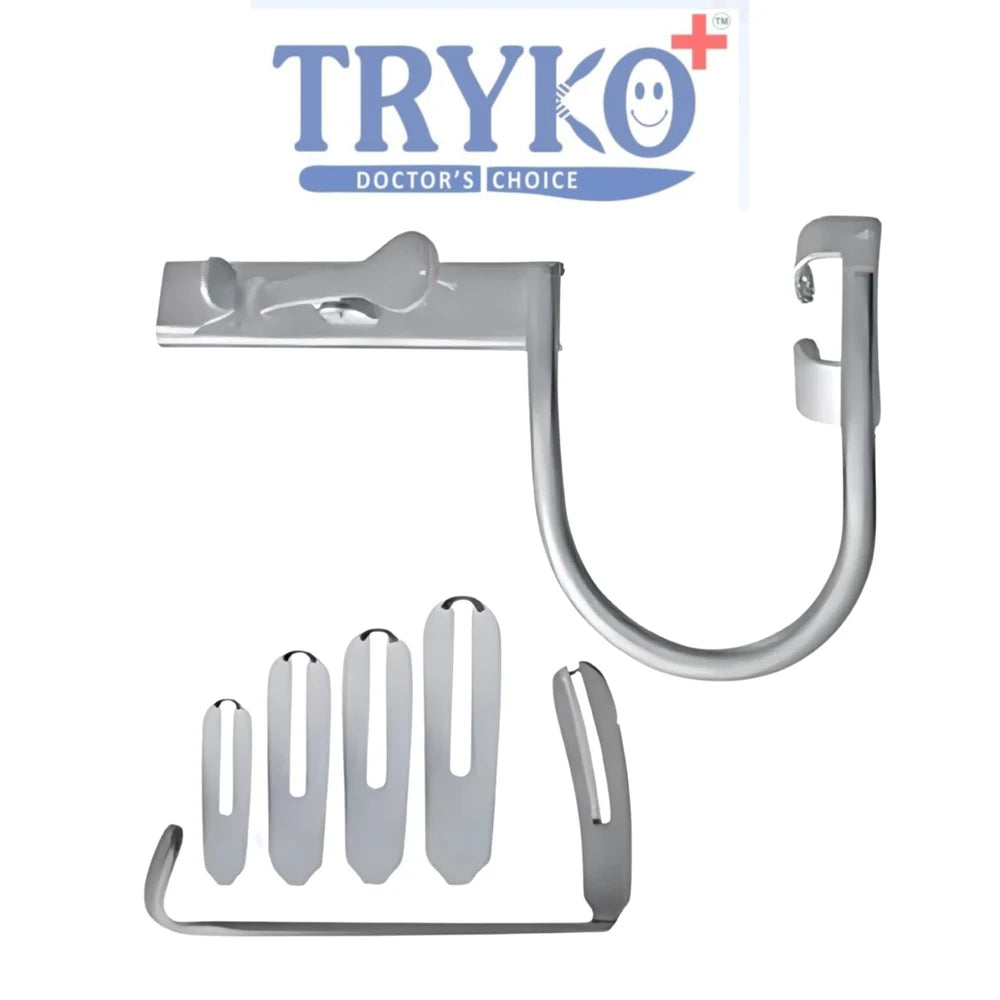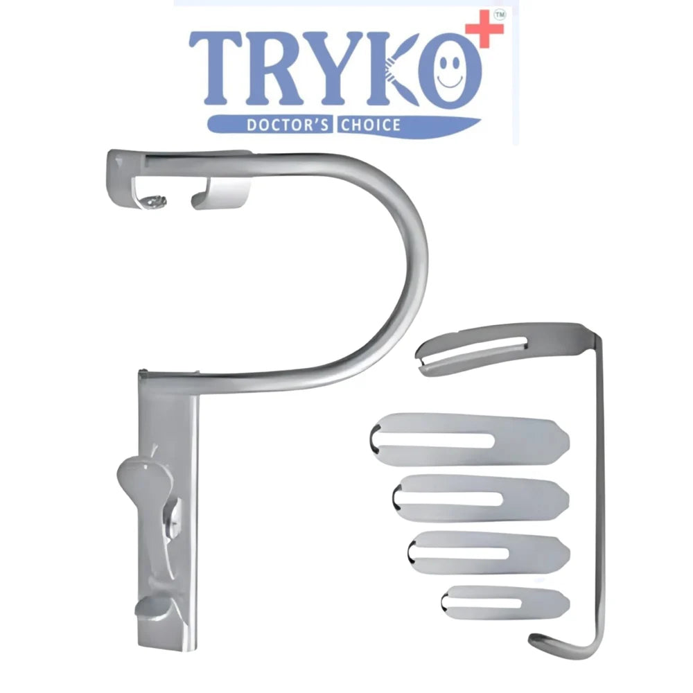 Product Description: The TRYKO+ Davis Boyle Mouth Gag with 5 Blades (AI0482) is an essential surgical instrument designed to provide a secure and unobstructed operative field for oral and ENT procedures. This comprehensive set includes a robust, self-retaining mouth gag frame and a collection of five interchangeable blades of different sizes. This allows surgeons to precisely fit the instrument to the patient's anatomy, from pediatric to adult cases. The self-retaining mechanism locks the mouth in an open position and provides stable tongue retraction, freeing the surgeon's hands and significantly enhancing visibility in the pharyngeal and laryngeal regions. Crafted from high-grade, autoclavable surgical stainless steel, the entire set is durable, corrosion-resistant, and built for consistent, long-term performance in demanding surgical environments.