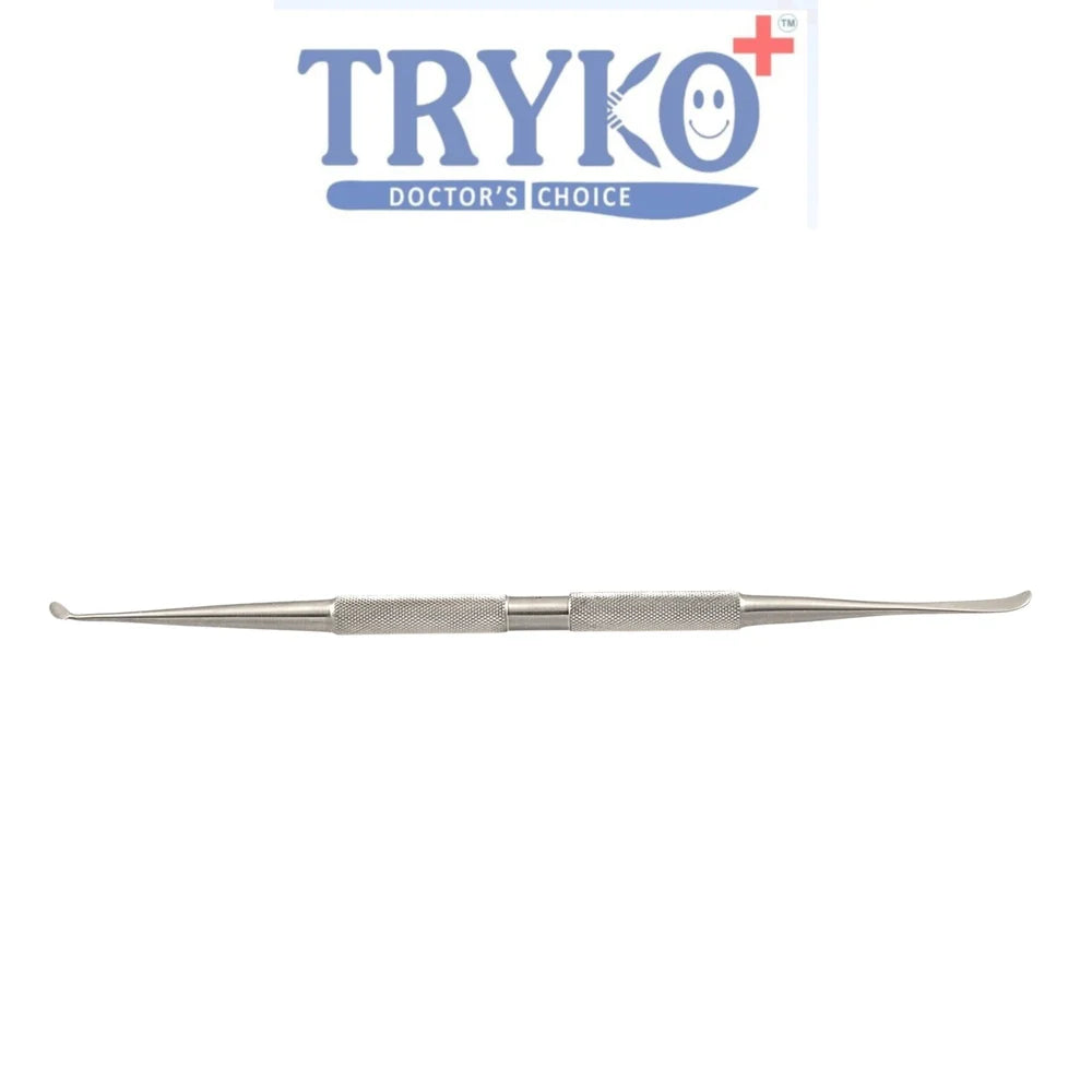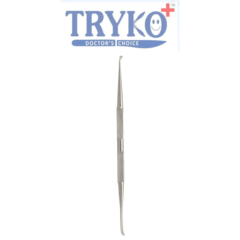 Product Description: The TRYKO+ Dural Elevator, Double Ended (AI0609) is a specialized and versatile neurosurgical instrument designed for the meticulous dissection of the dura mater. Engineered from high-grade surgical stainless steel, this elevator is a reliable tool for creating safe access to the central nervous system. The instrument's dual functionality is a key advantage, with one end typically featuring a sharp profile for precise cutting and dissection, and the other end designed for atraumatic elevation and separation of the dura from bone. This dual-purpose design reduces the need to switch instruments and enhances surgical efficiency. The ergonomic handle and polished satin finish minimize glare and provide the surgeon with exceptional control and comfort during long, intricate procedures.